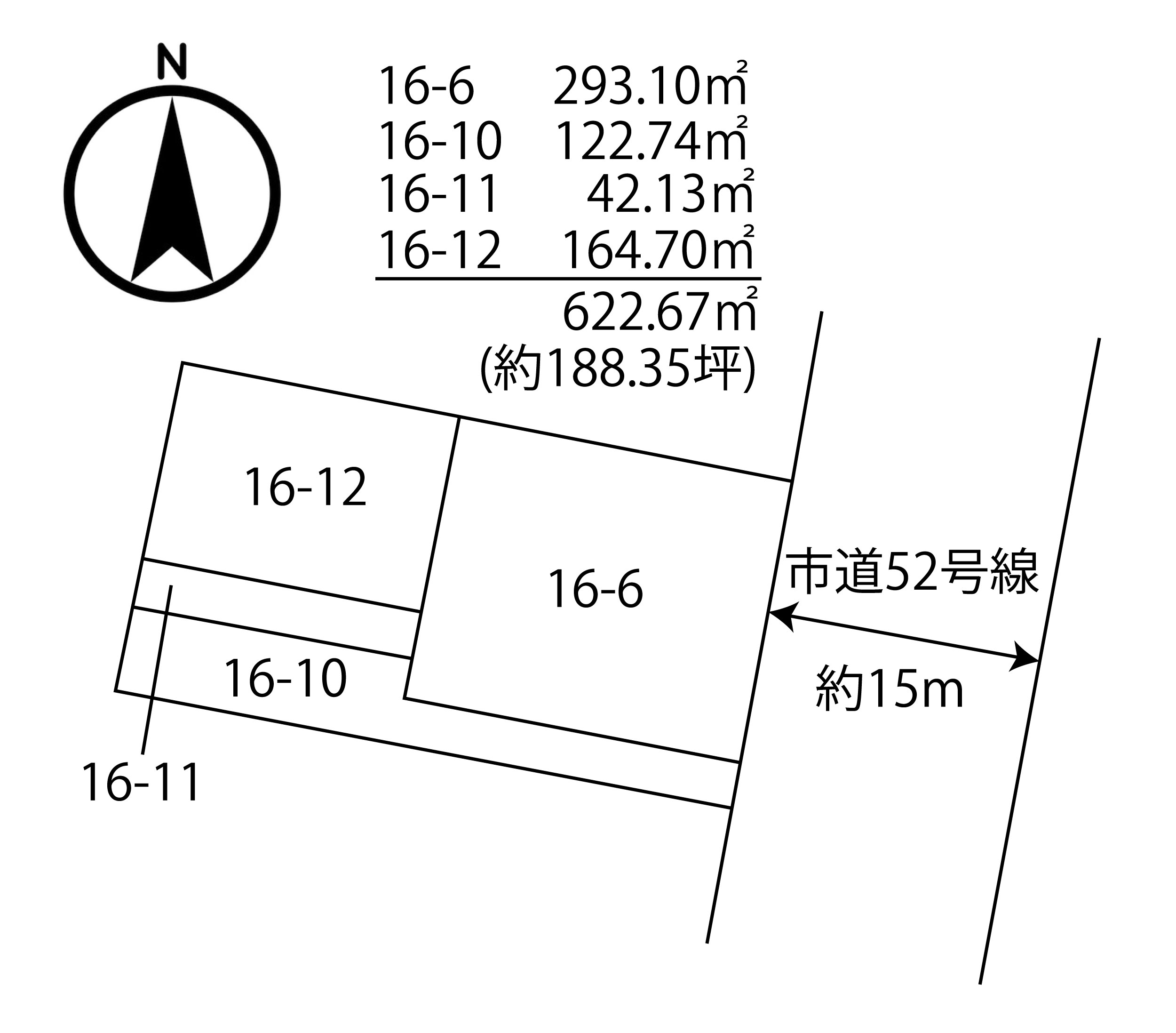 | 備考 | ・4筆:地番16-6(293.10㎡)、16-10(122.74㎡)、16-11(42.13㎡)、16-12(164.70㎡) ・測量代買主負担 |