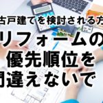 2022年6月30日 / 最終更新日時 : 2023年12月21日 えだまめ お金 中古戸建てを検討される方へリフォームの優先順位を間違えないで! ウクライナ情勢、円安の進行などを背景に日用品の値上がりが続いています。非常に不安定な経済情勢の中、都市部のマンションは値上がり傾向が続いていて、郊外の中古戸建てを検討する方も少なくないと思います。確かに都心部のマンション […]